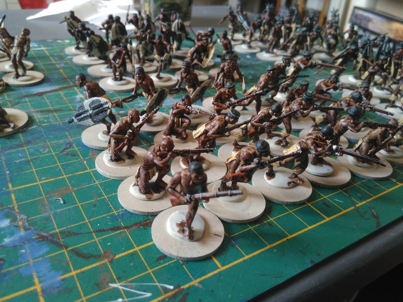 Afin de pouvoir commencer la campagne sereinement à la rentrée avec suffisamment d'armées, voici mon armée zulu peinte aujourd'hui en une grosse session de peinture :